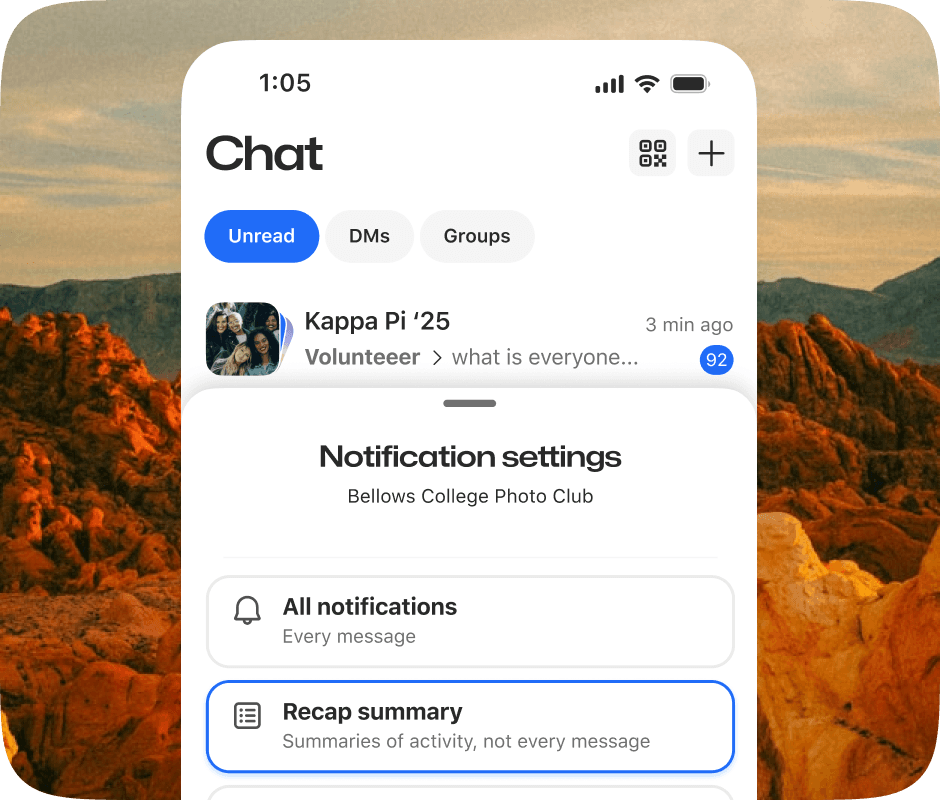 GroupMe has always been about keeping your groups connected. Recaps make sure you stay connected too, even when you can't be there for every message.