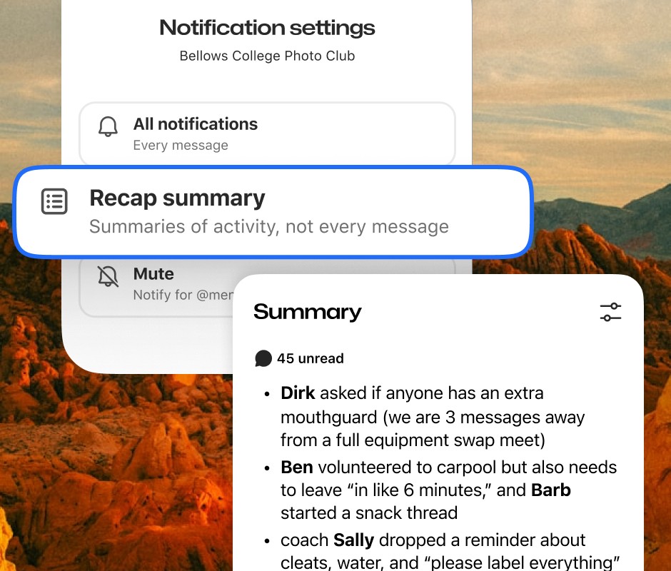 Cut through the chatter with chat filters, quick Recap summaries, and smarter system controls. Less clutter, fewer distractions, and the important stuff still finds you.